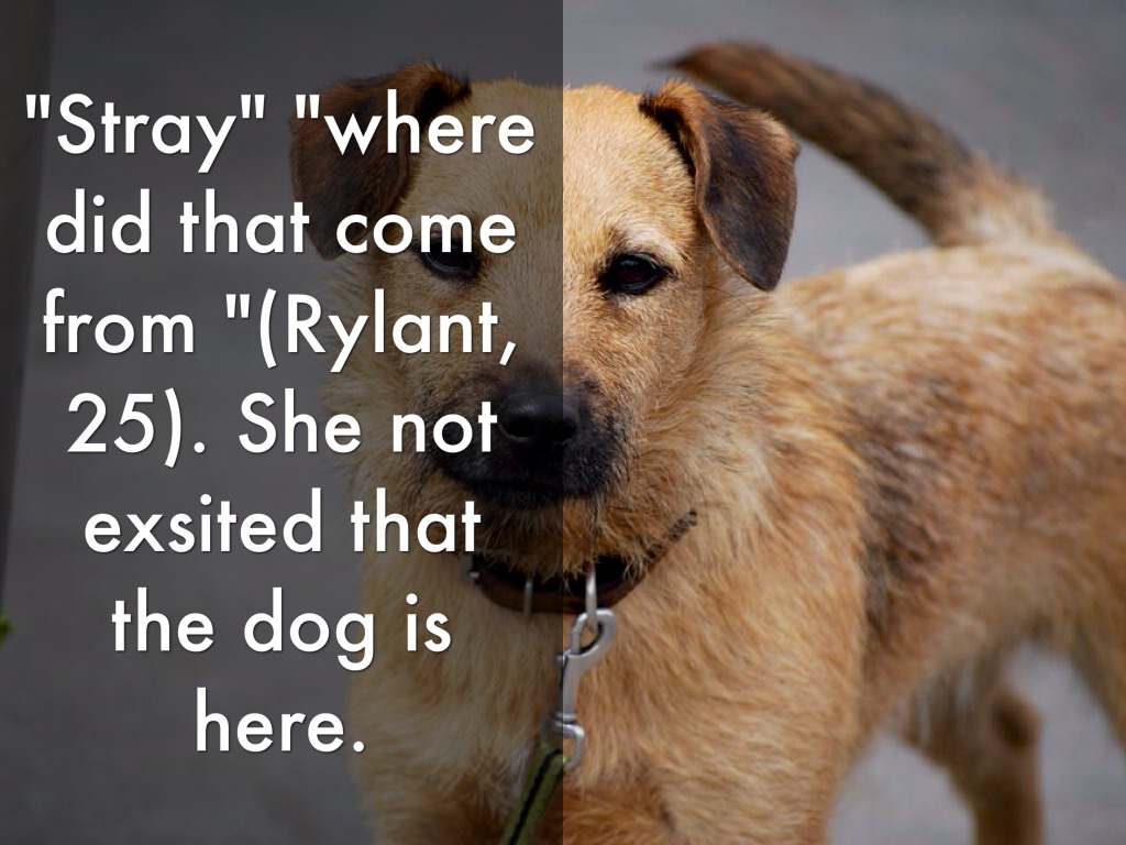 "Stray" "where did that come from "(Rylant,25). She not exsited that the dog is here.