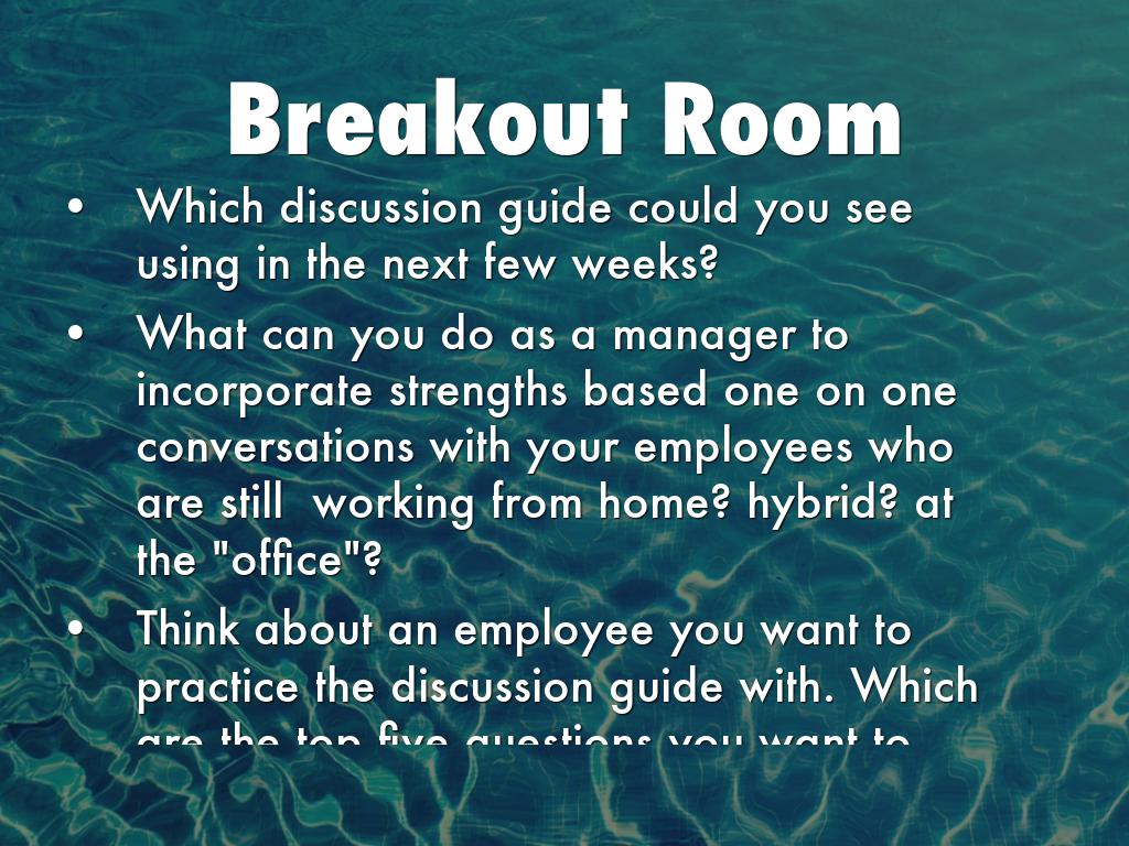What can you do as a manager to incorporate strengths based one on one conversations with your employees who are still working from home? hybrid? at the "office"?