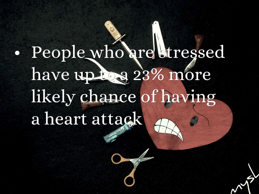 People who are stressed have up to a 23% more likely chance of having a heart attack