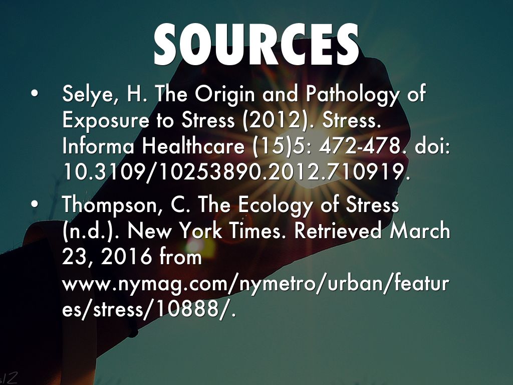 Thompson, C. The Ecology of Stress (n.d.). New York Times. Retrieved March 23, 2016 from