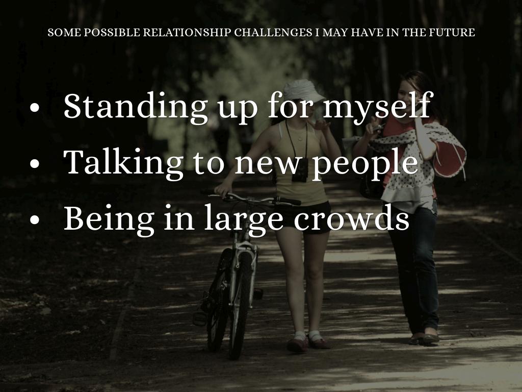 SOME POSSIBLE RELATIONSHIP CHALLENGES I MAY HAVE IN THE FUTURE