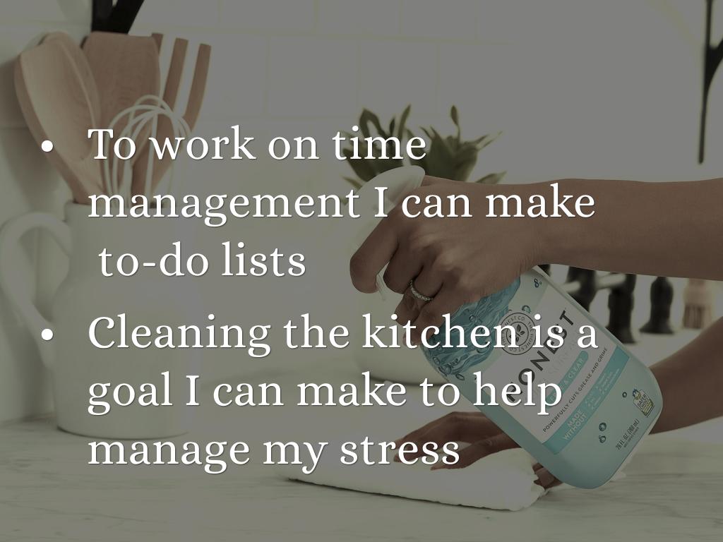 Cleaning the kitchen is a goal I can make to help manage my stress