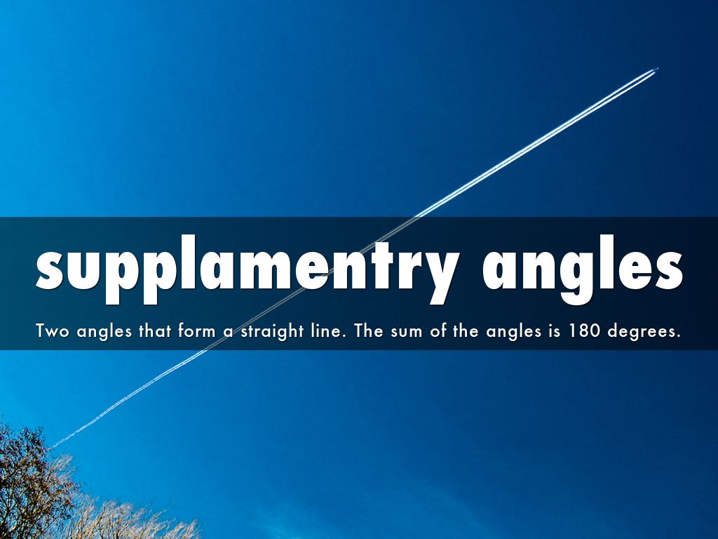 Two angles that form a straight line. The sum of the angles is 180 degrees.