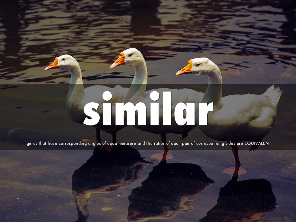 Figures that have corresponding angles of equal measure and the ratios of each pair of corresponding sides are EQUIVALENT.