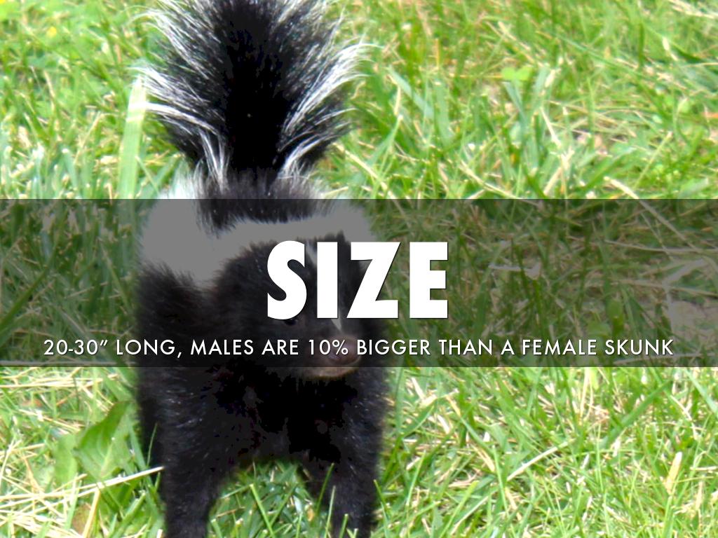 20-30” LONG, MALES ARE 10% BIGGER THAN A FEMALE SKUNK