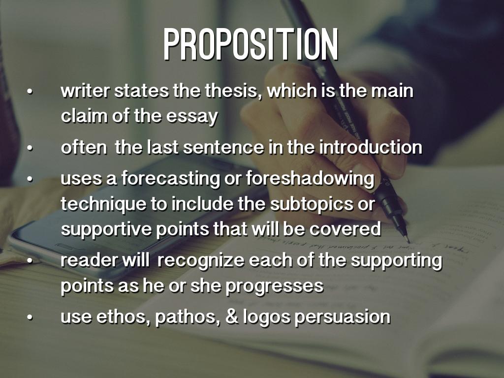 - uses a forecasting or foreshadowing technique to include the subtopics or supportive points that will be covered