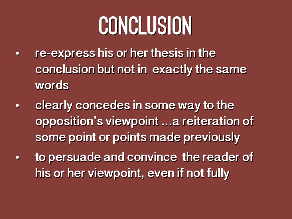 - must have more points and stronger value for his/her argument so the essay is not weakened