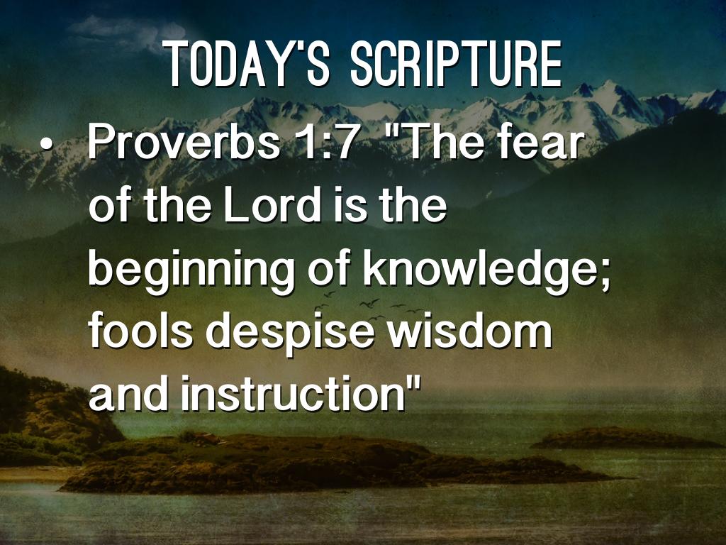 - Proverbs 1:7 "The fear of the Lord is the beginning of knowledge; fools despise wisdom and instruction"