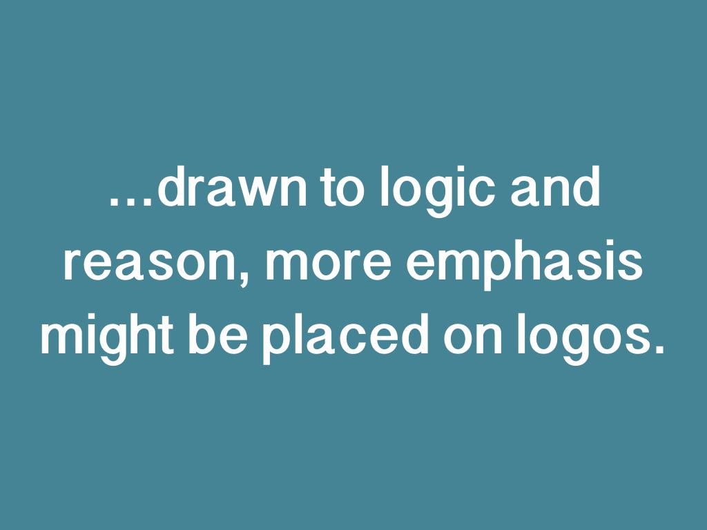...drawn to logic and reason, more emphasis might be placed on logos.