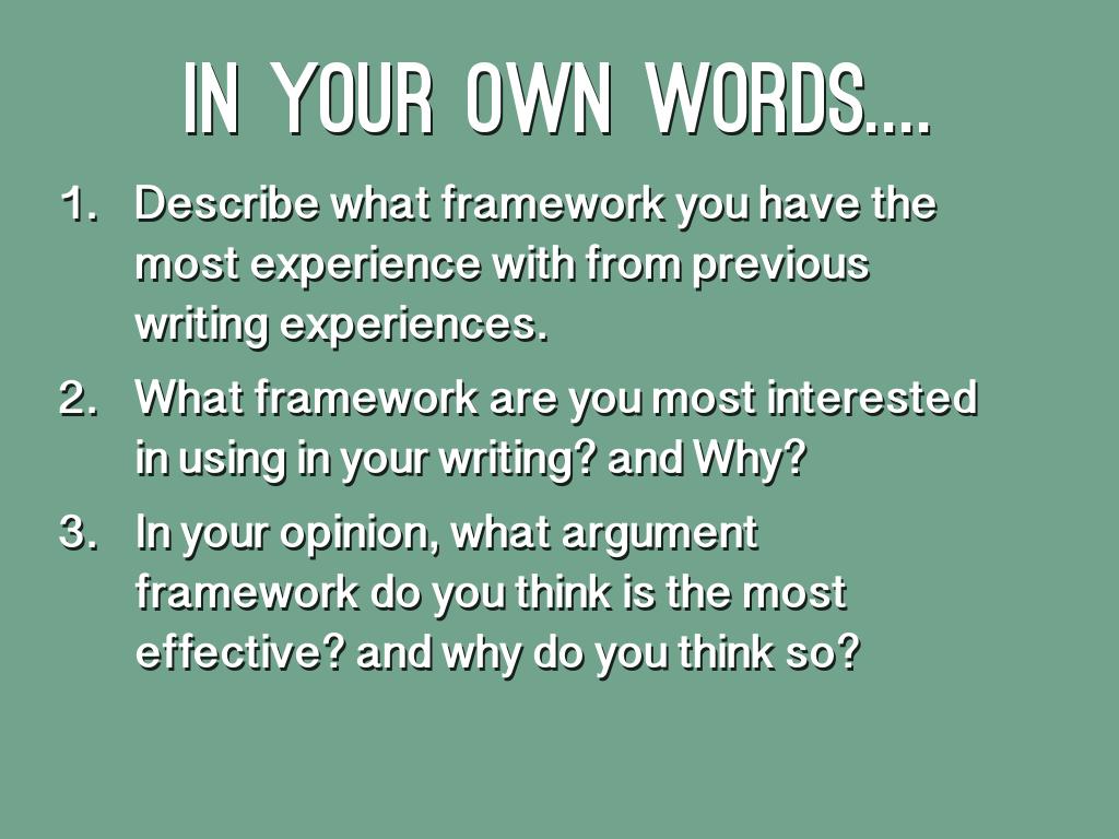 - In your opinion, what argument framework do you think is the most effective? and why do you think so?
