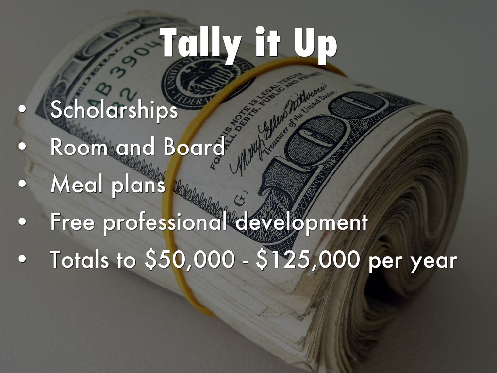 When you consider student athletes frequently get full or partial scholarships, room and board paid for, transportation, abundant meal plans, and free professional development training (media training, life skills, networking), these value added services come to total $50-125k year.