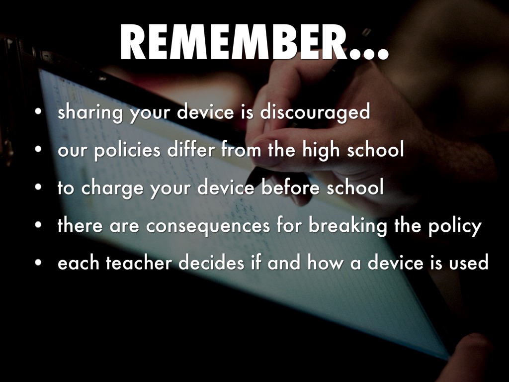 The BYOD program encourages students to bring their own personal devices to school for use as an educational tool.