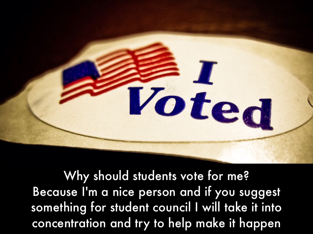 Because I'm a nice person and if you suggest something for student council I will take it into concentration and try to help make it happen