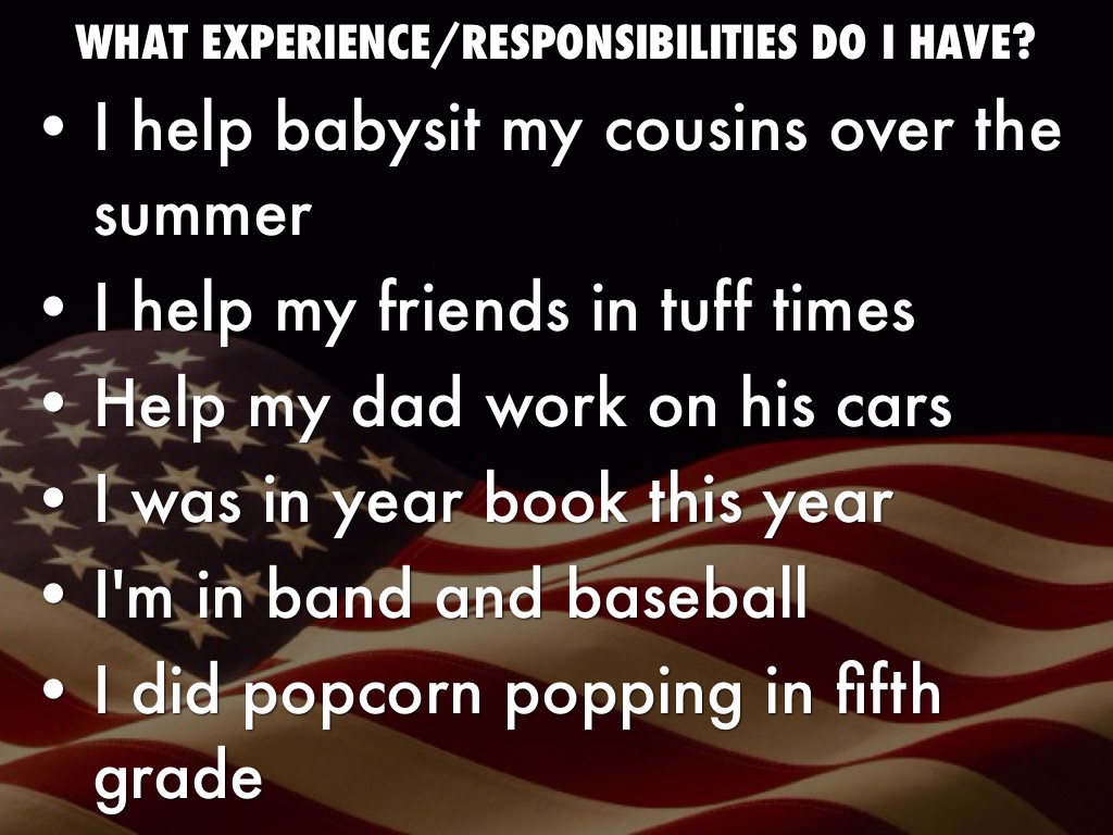 WHAT EXPERIENCE/RESPONSIBILITIES DO I HAVE?