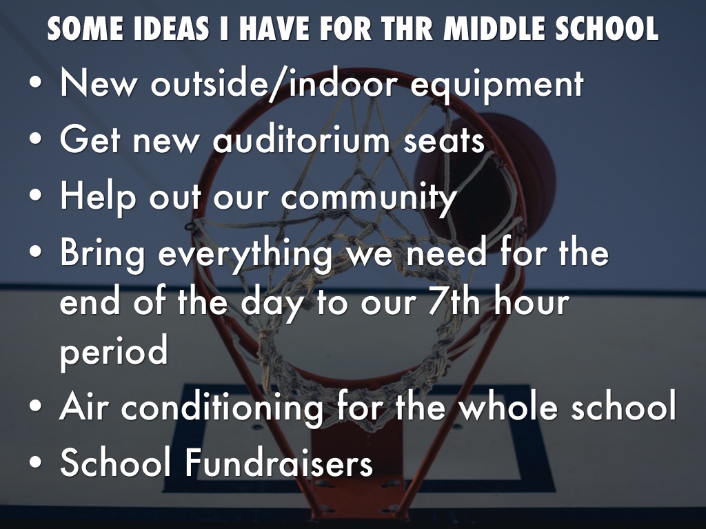 SOME IDEAS I HAVE FOR THR MIDDLE SCHOOL