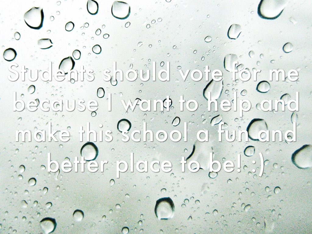 Students should vote for me because I want to help and make this school a fun and better place to be! :)