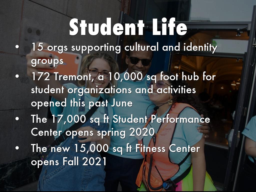 • 172 Tremont, a 10,000 sq foot hub for student organizations and activities opened this past June