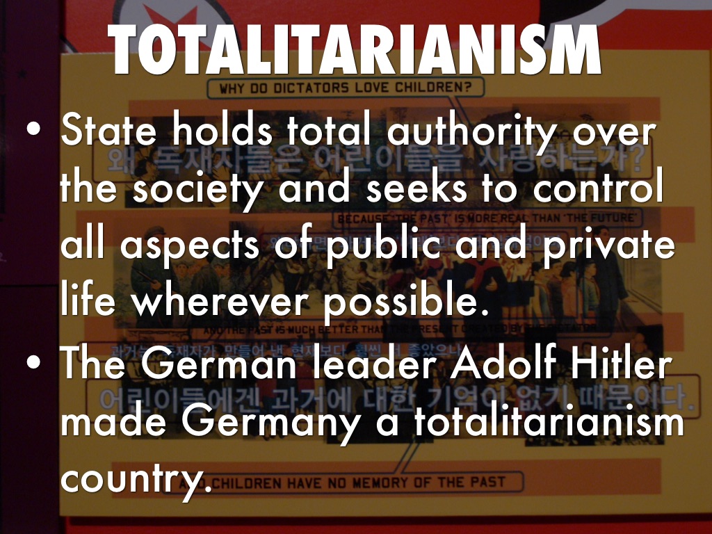 The German leader Adolf Hitler made Germany a totalitarianism country.