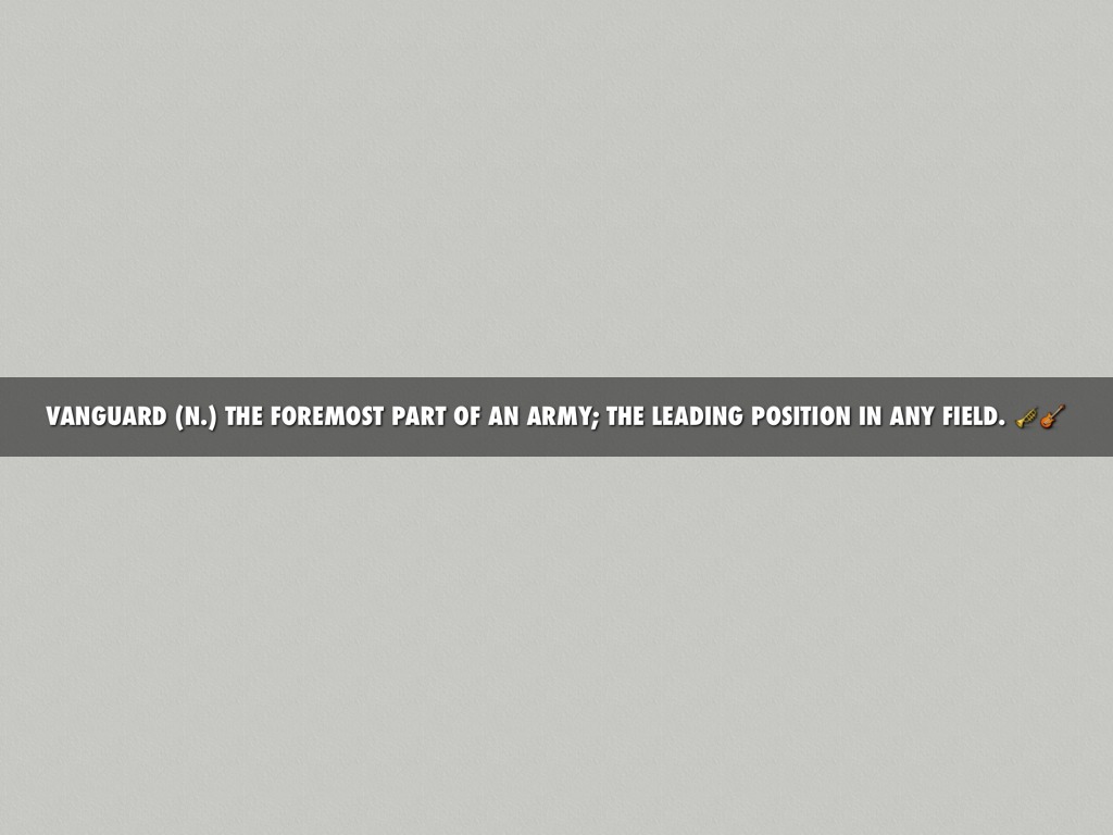 vanguard (n.) the foremost part of an army; the leading position in any field.