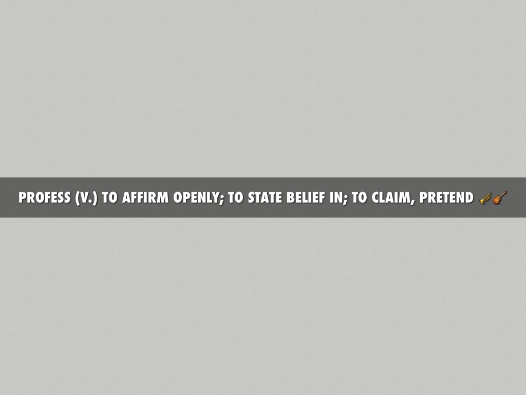 profess (v.) to affirm openly; to state belief in; to claim, pretend