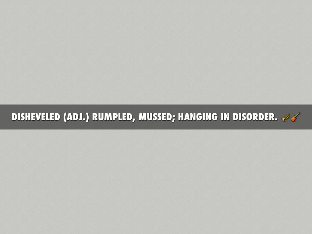 disheveled (adj.) rumpled, mussed; hanging in disorder.