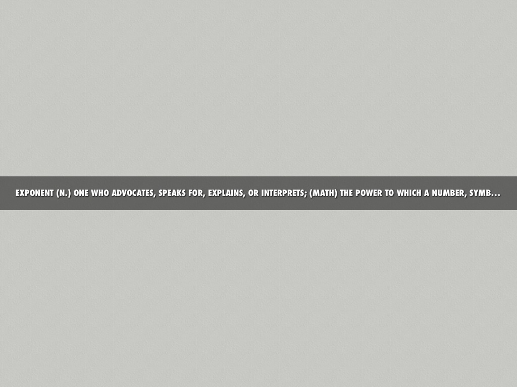 exponent (n.) one who advocates, speaks for, explains, or interprets; (math) the power to which a number, symbol, or expression is to be raised.