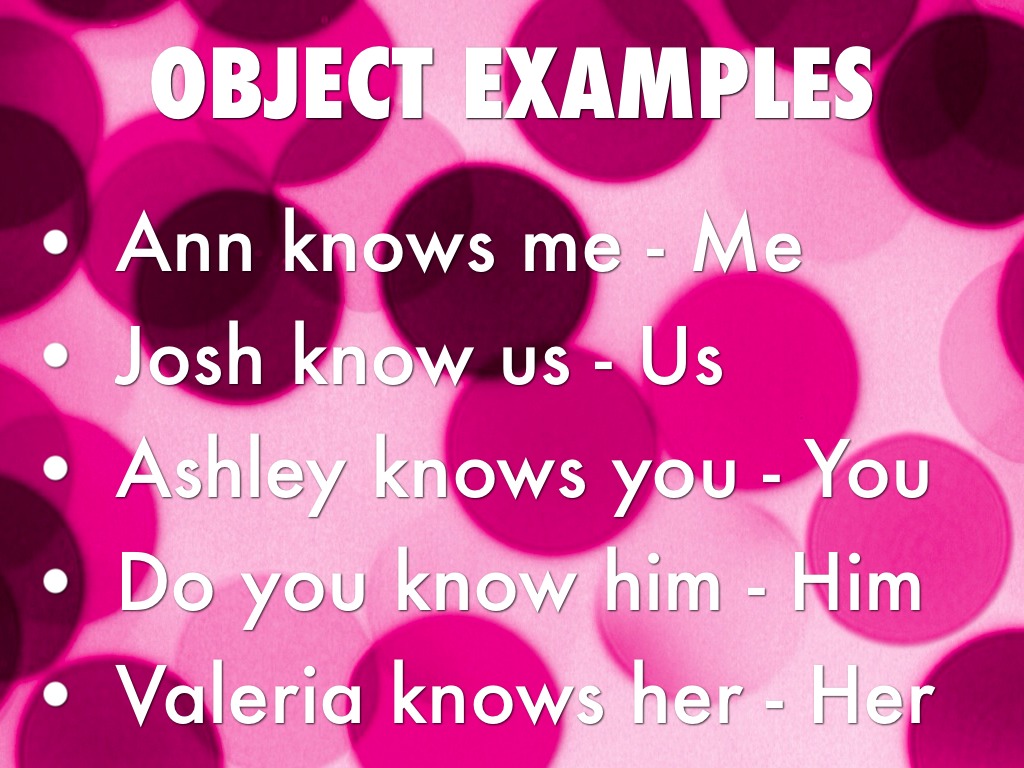 OBJECT PRONOUNS ARE WORDS LIKE ME,YOU,HIM,HER