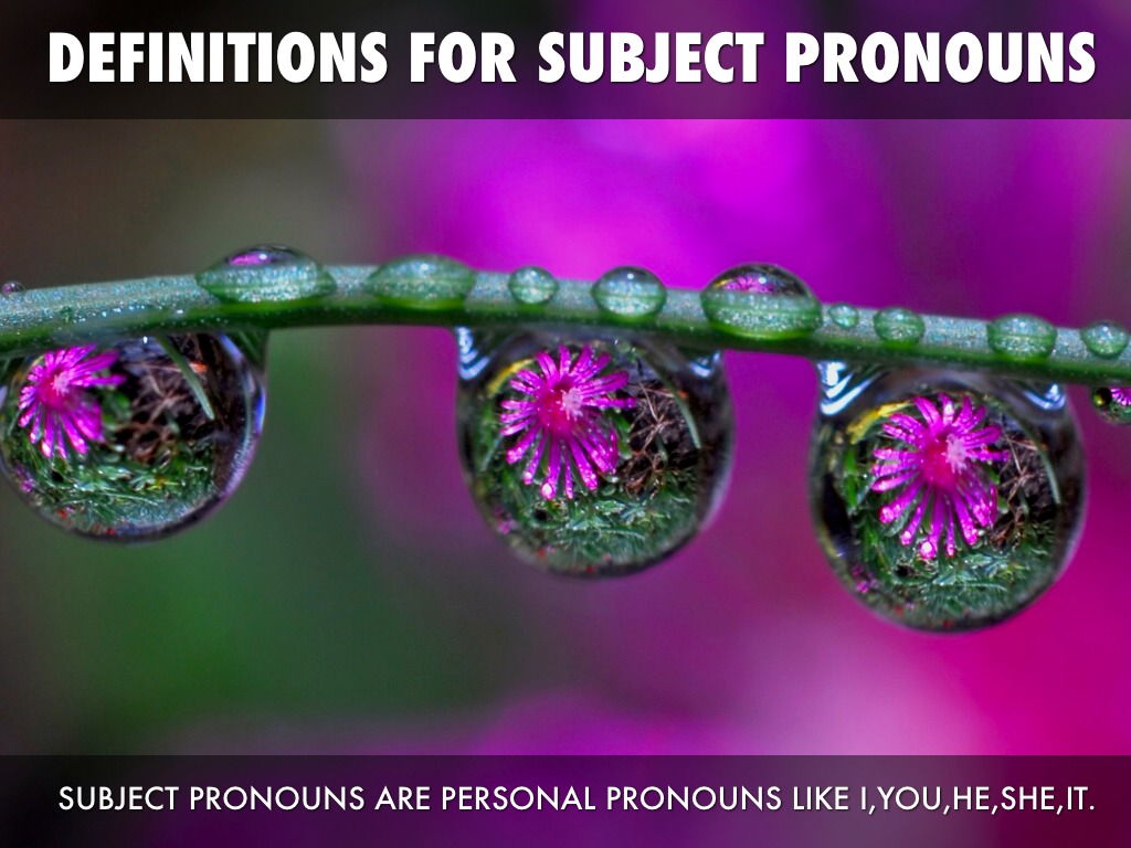 SUBJECT PRONOUNS ARE PERSONAL PRONOUNS LIKE I,YOU,HE,SHE,IT.
