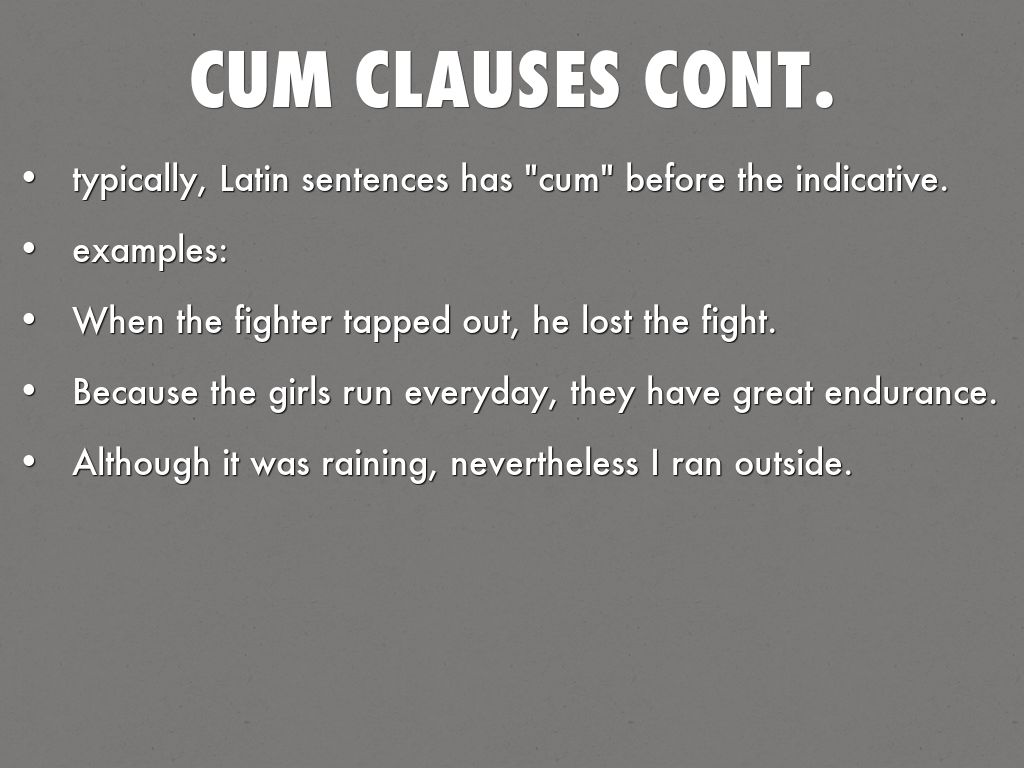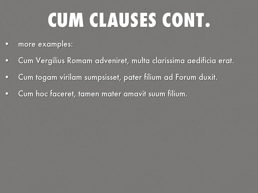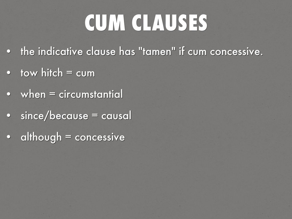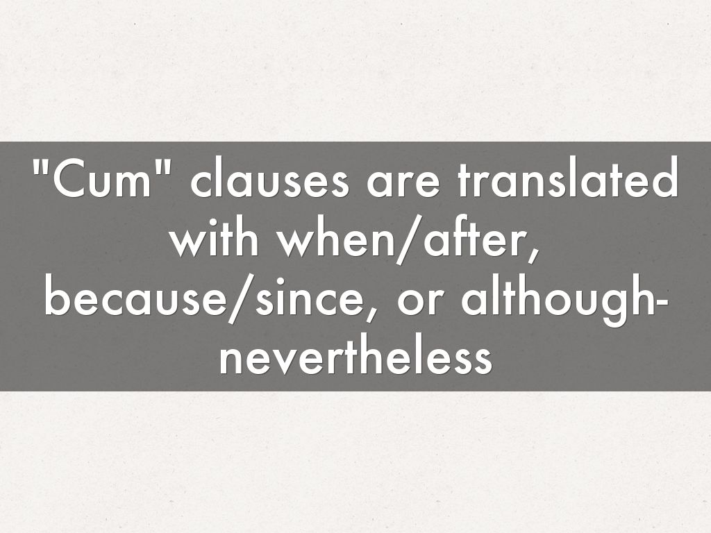 "Cum" clauses are translated with when/after, because/since, or although-nevertheless