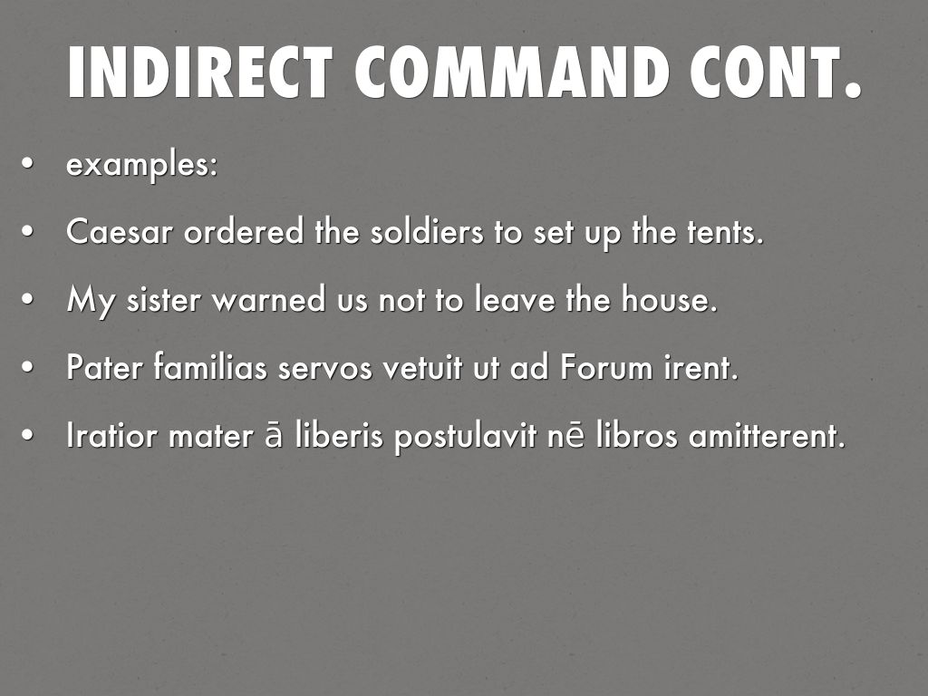 Indirect command clauses are just like indirect questions, but is commanding someone.