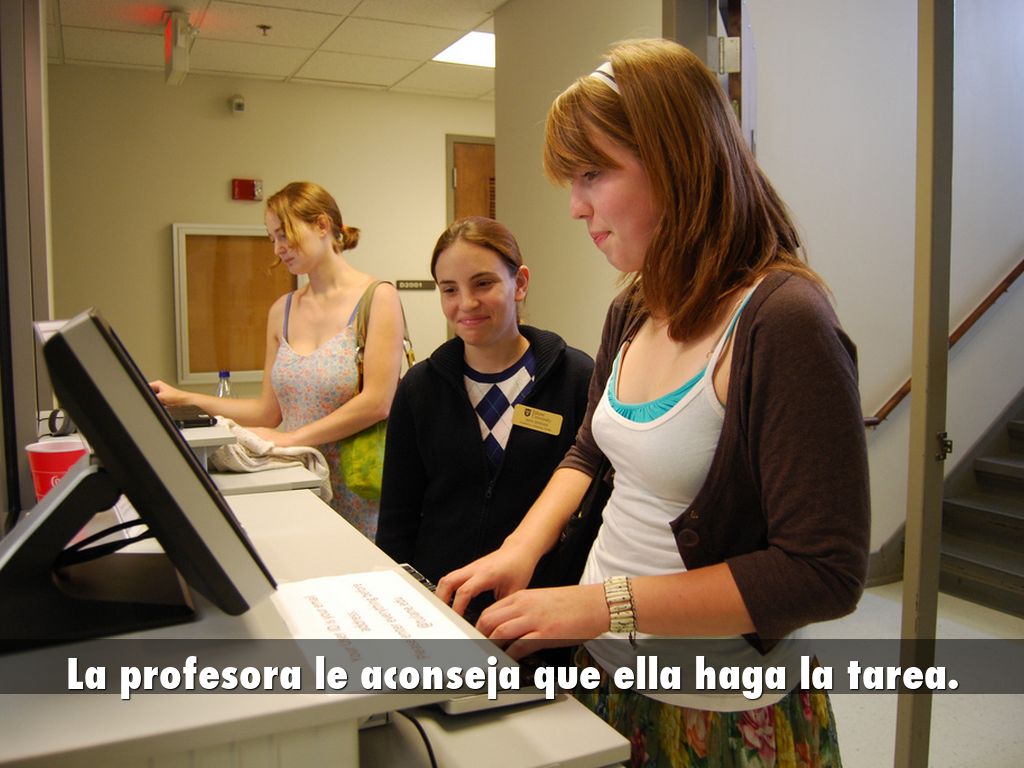 La profesora le aconseja que ella haga la tarea.