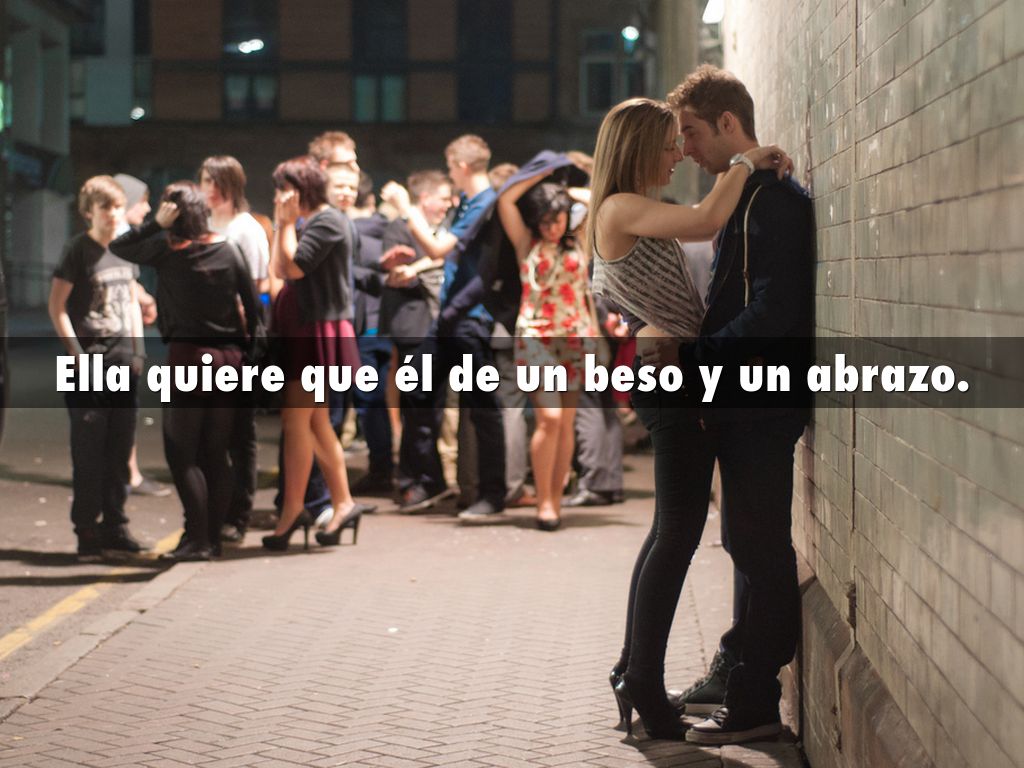 Ella quiere que él de un beso y un abrazo.