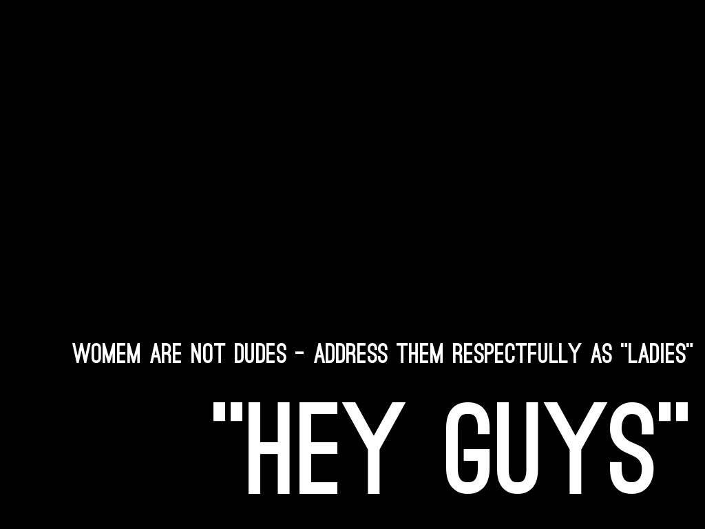 WOMEM ARE NOT DUDES - ADDRESS THEM RESPECTFULLY AS "LADIES"