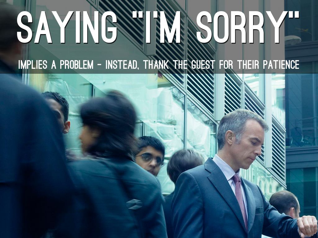 IMPLIES A PROBLEM - INSTEAD, THANK THE GUEST FOR THEIR PATIENCE