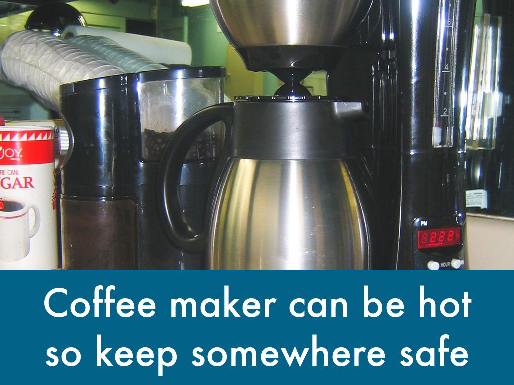 Coffee maker can be hot so keep somewhere safe