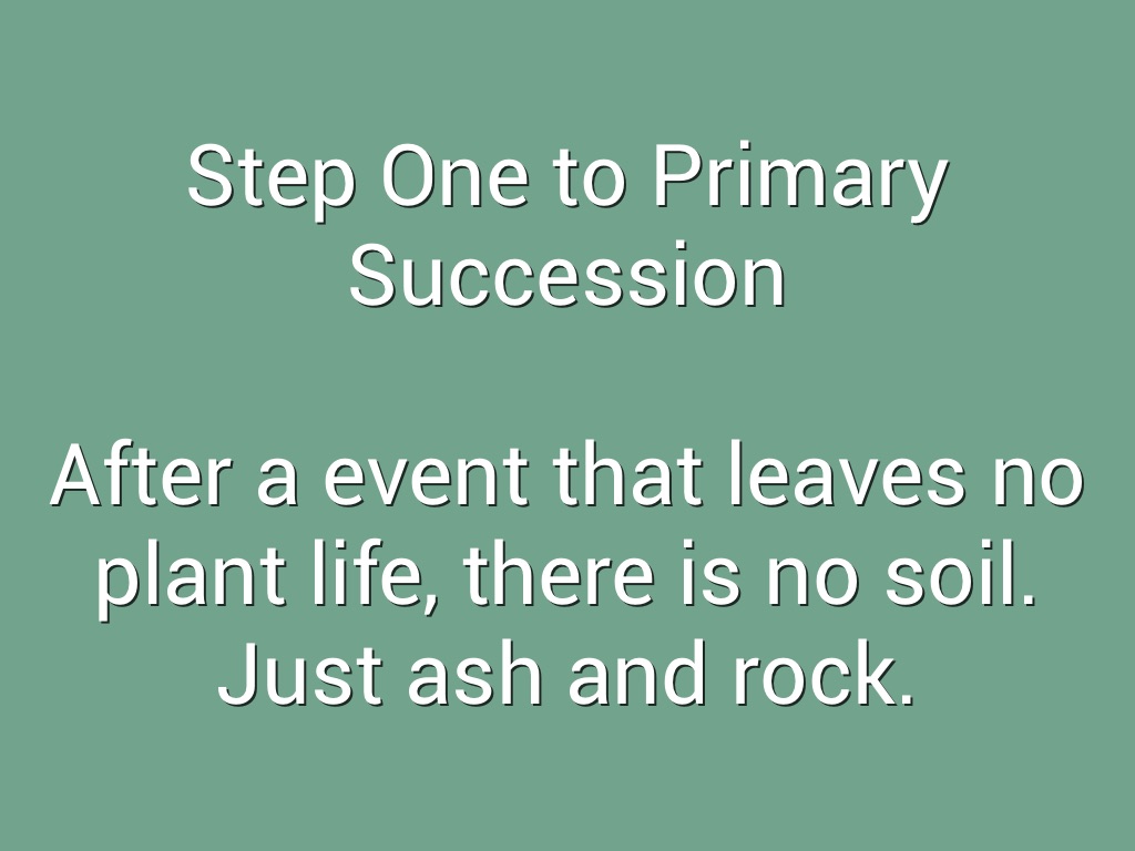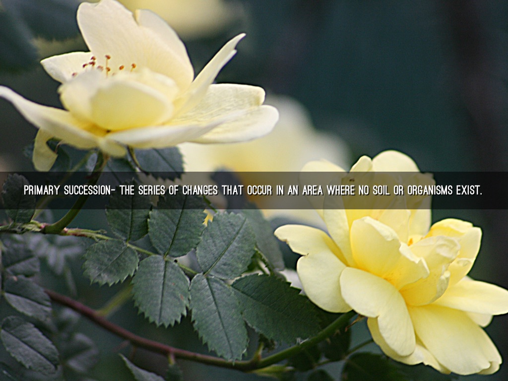 PRIMARY SUCCESSION- THE SERIES OF CHANGES THAT OCCUR IN AN AREA WHERE NO SOIL OR ORGANISMS EXIST.