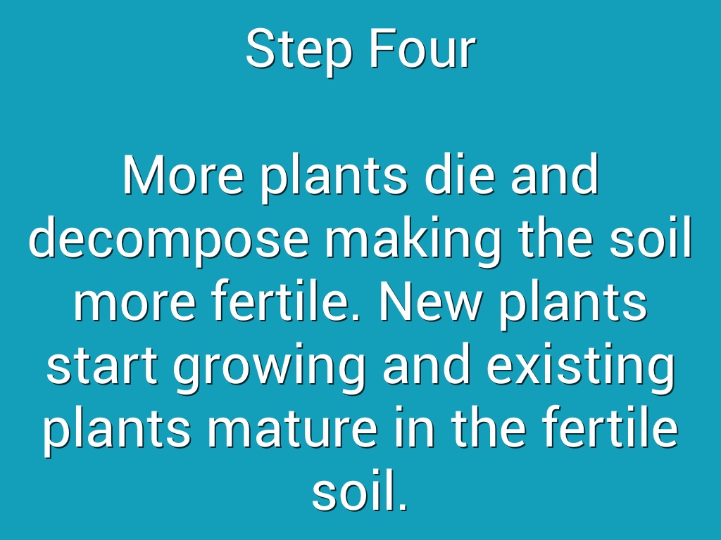 More plants die and decompose making the soil more fertile. New plants start growing and existing plants mature in the fertile soil.