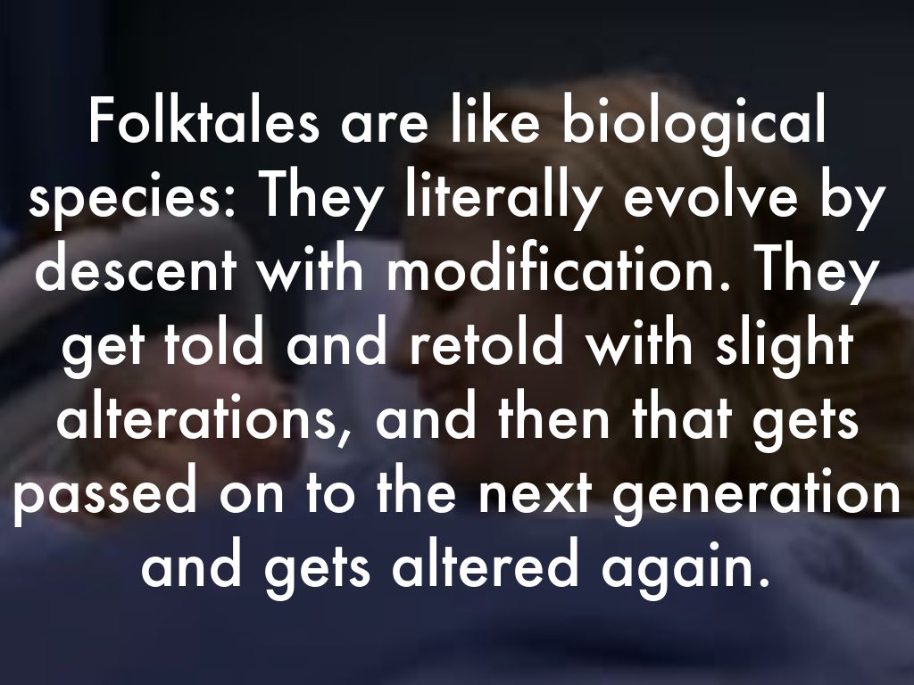 Folktales are like biological species: They literally evolve by descent with modification. They get told and retold with slight alterations, and then that gets passed on to the next generation and gets altered again.
