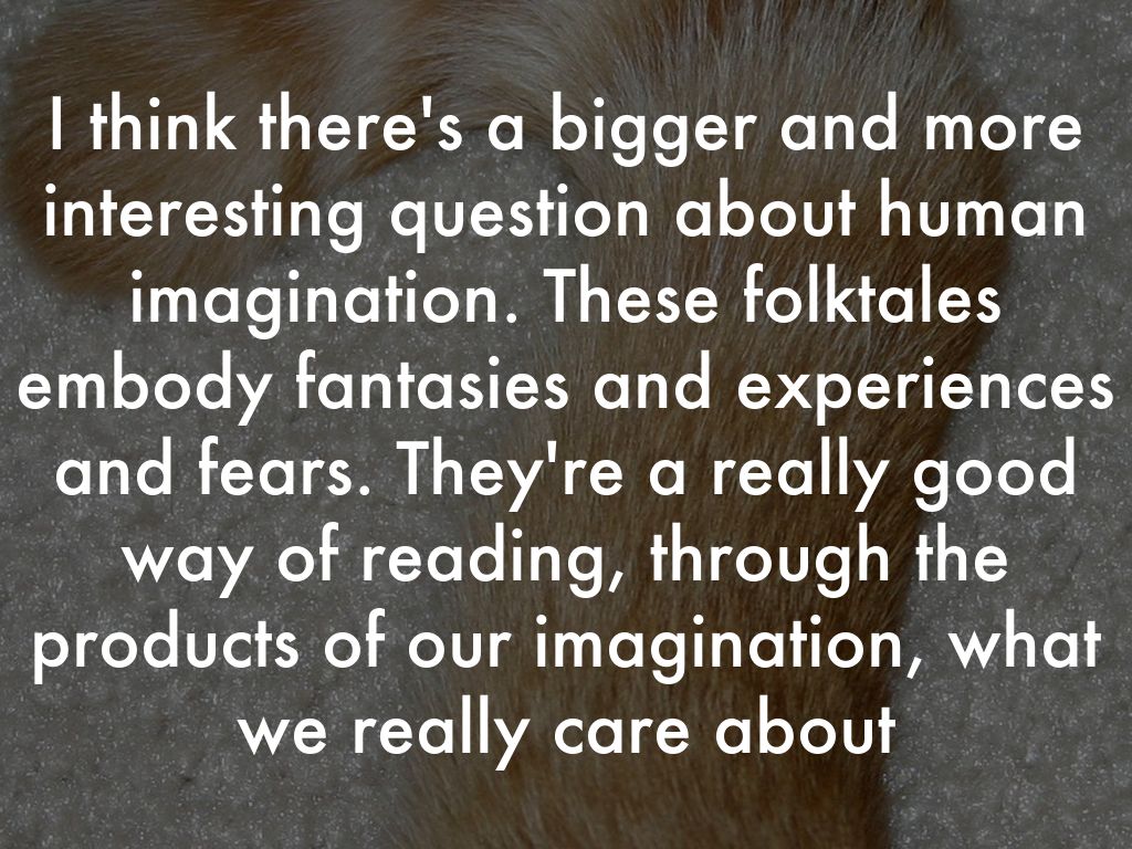 I think there's a bigger and more interesting question about human imagination. These folktales embody fantasies and experiences and fears. They're a really good way of reading, through the products of our imagination, what we really care about