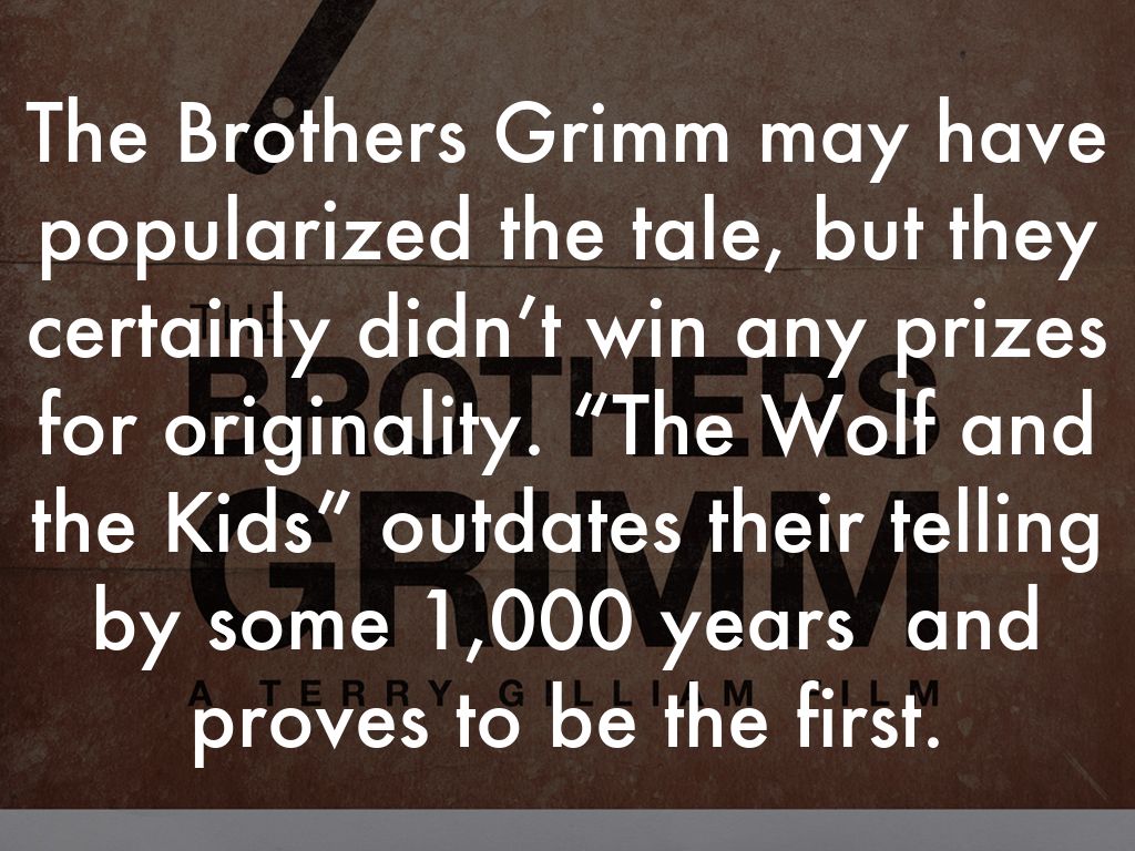 The Brothers Grimm may have popularized the tale, but they certainly didn’t win any prizes for originality. “The Wolf and the Kids” outdates their telling by some 1,000 years and proves to be the first.