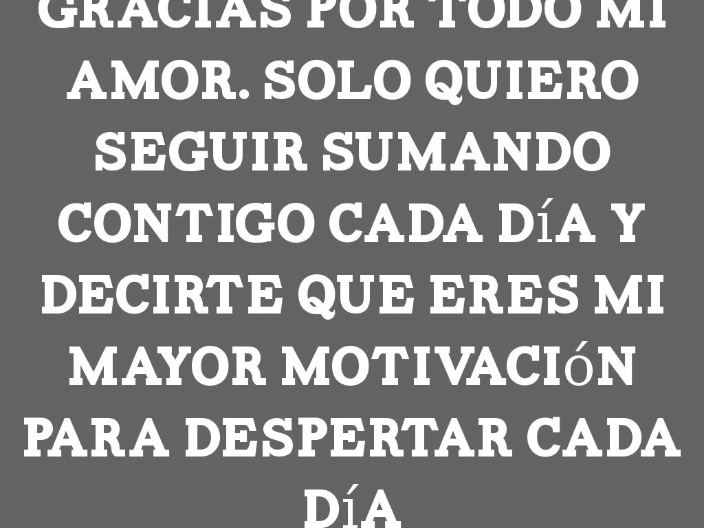 Gracias por todo mi amor. Solo quiero seguir sumando contigo cada día y decirte que eres mi mayor motivación para despertar cada día
