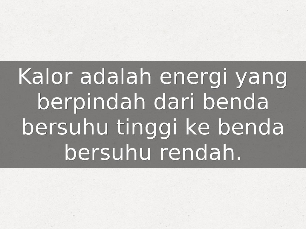 Kalor adalah energi yang berpindah dari benda bersuhu tinggi ke benda bersuhu rendah.