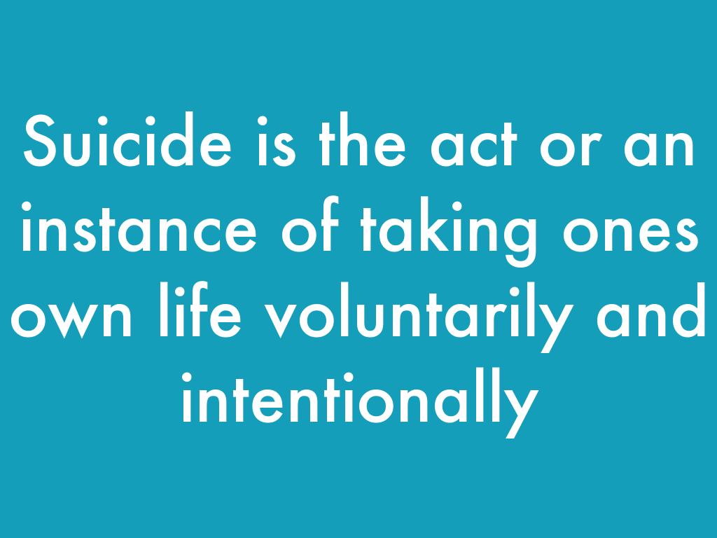 Suicide is the act or an instance of taking ones own life voluntarily and intentionally