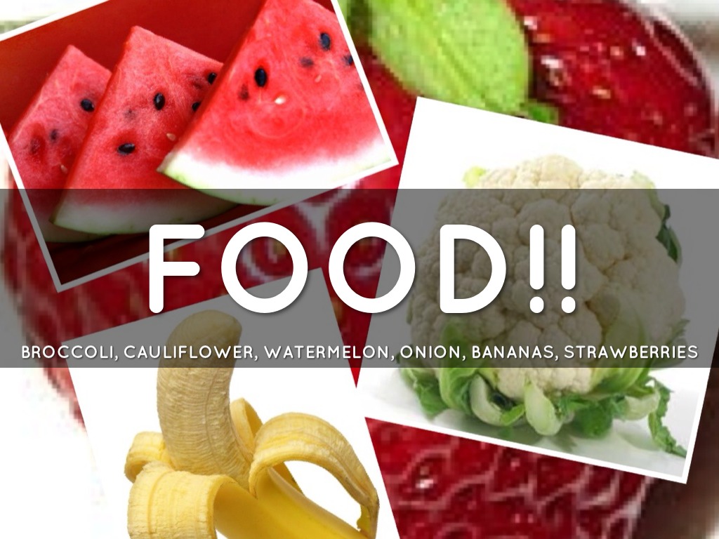 BROCCOLI, CAULIFLOWER, WATERMELON, ONION, BANANAS, STRAWBERRIES