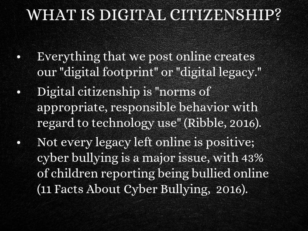 Not every legacy left online is positive; cyber bullying is a major issue, with 43% of children reporting being bullied online (11 Facts About Cyber Bullying, 2016).