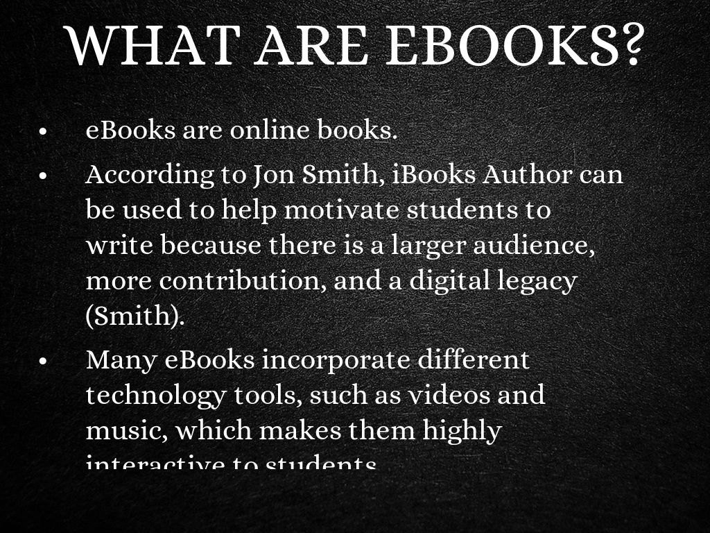 According to Jon Smith, iBooks Author can be used to help motivate students to write because there is a larger audience, more contribution, and a digital legacy (Smith).