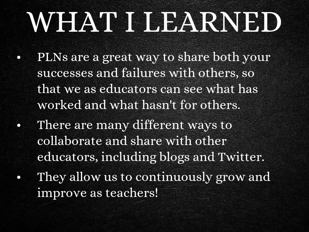 PLNs are a great way to share both your successes and failures with others, so that we as educators can see what has worked and what hasn't for others.