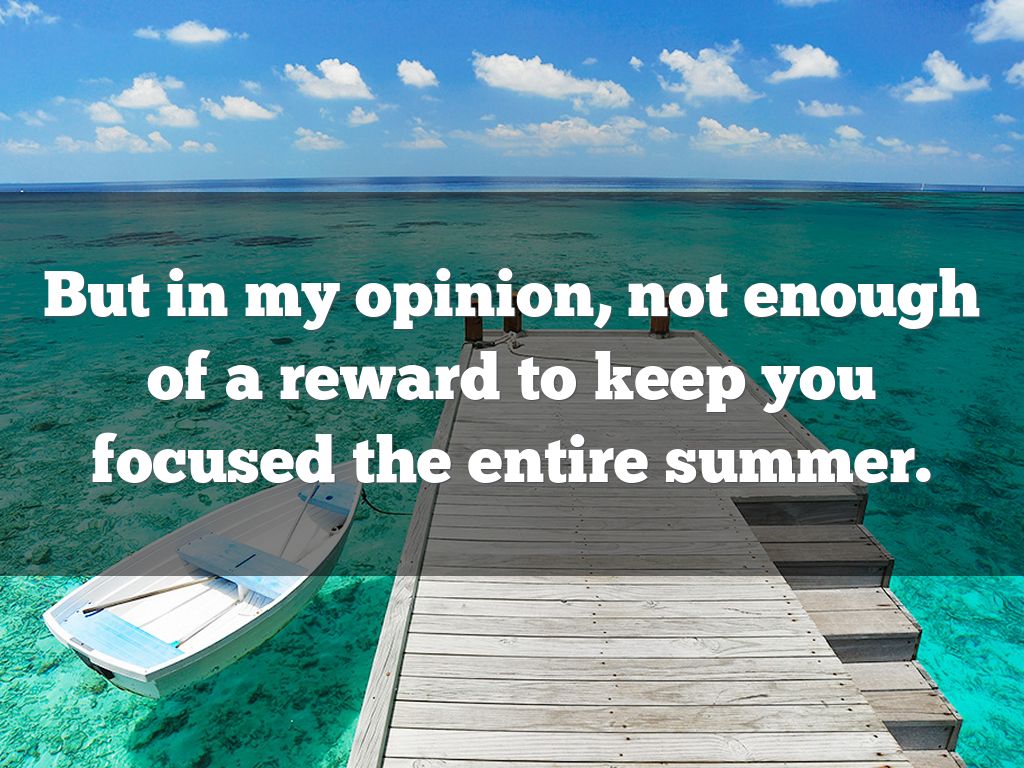 Identify a reward commensurate with your summertime goals, and the effort you’re going to put forth to achieve them.