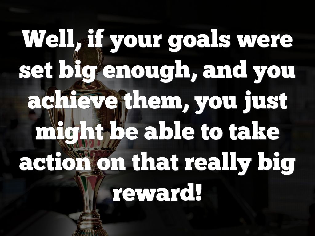 Well, if your goals were set big enough, and you achieve them, you just might be able to take action on that really big reward!