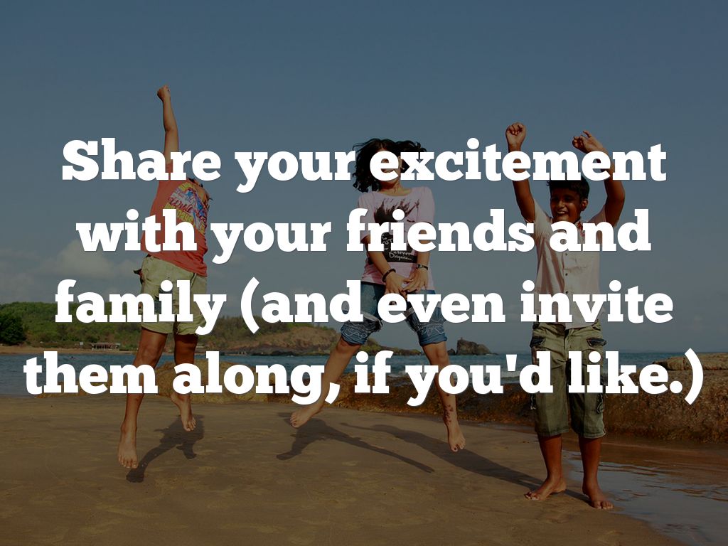 Share your excitement with your friends and family (and even invite them along, if you’d like.)